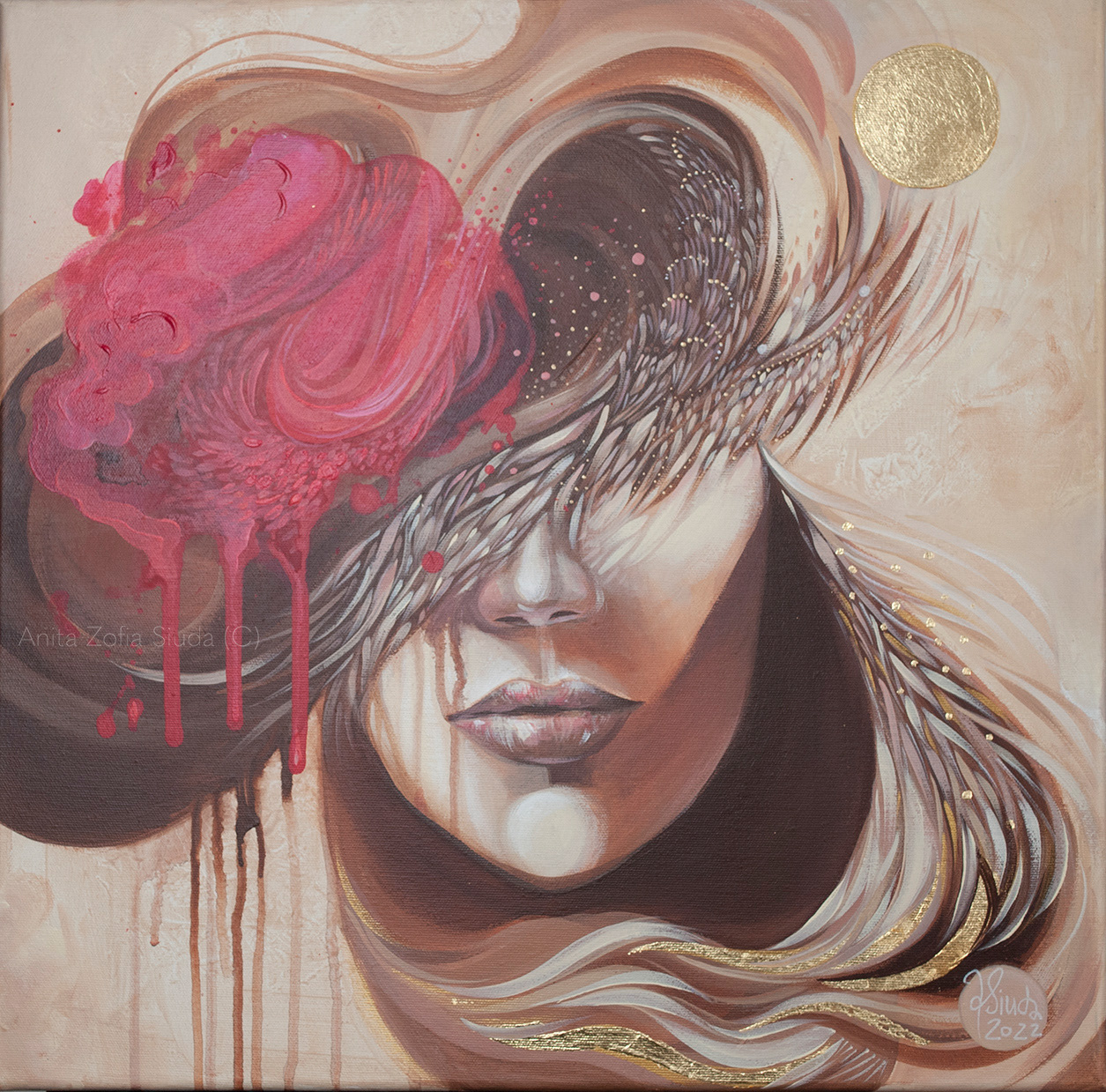 50x50 cm, 2022, akryl i szlakmetal na płótnie (acrylic and schlagmetal on canvas)