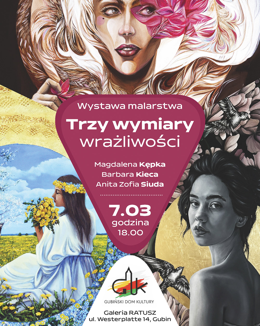 Serdecznie zapraszam w imieniu moim, komisarza wystawy Waldemara Pawlikowskiego oraz moich przyjaciółek: Magdaleny Kępki i Barbary Kiecy - Barutowicz na naszą wspólna wystawę do Gubińskiego Domu Kultury 7 marca 2025 o godzinie 18.00